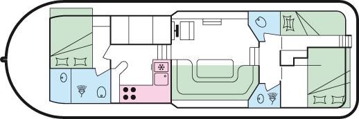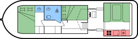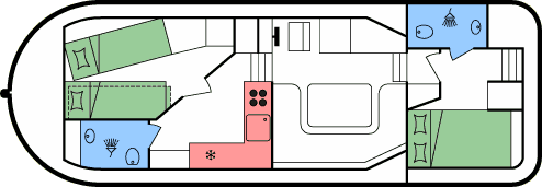 - In den beiden Bugkabinen 2 Einzel- oder 1 Doppelbett und ein drittes Etagenbett möglich